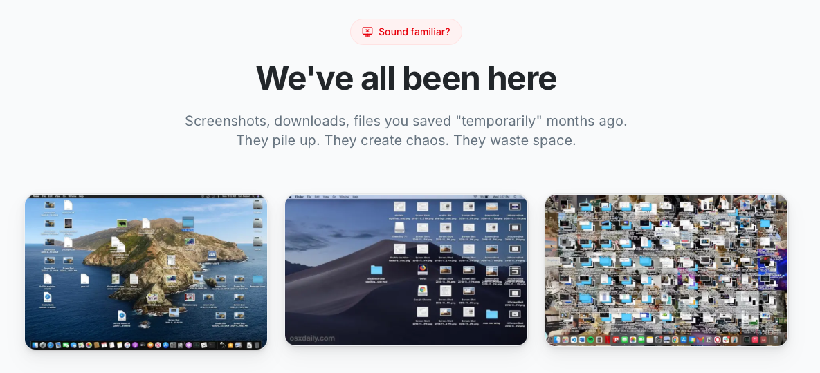 Hey everyone! I built Tidey because my desktop was always a disaster. Screenshots, random downloads, files I saved "just for now" 3 months ago... you know how it goes. So I made this simple menubar app. It shows you files that have been sitting on your Desktop or Downloads folder for a while, and you just pick: delete it or keep it. Thats it. No fancy features, no AI, no subscription. Just a quick way to go through your files and finally clean things up. Would love to hear what you think!