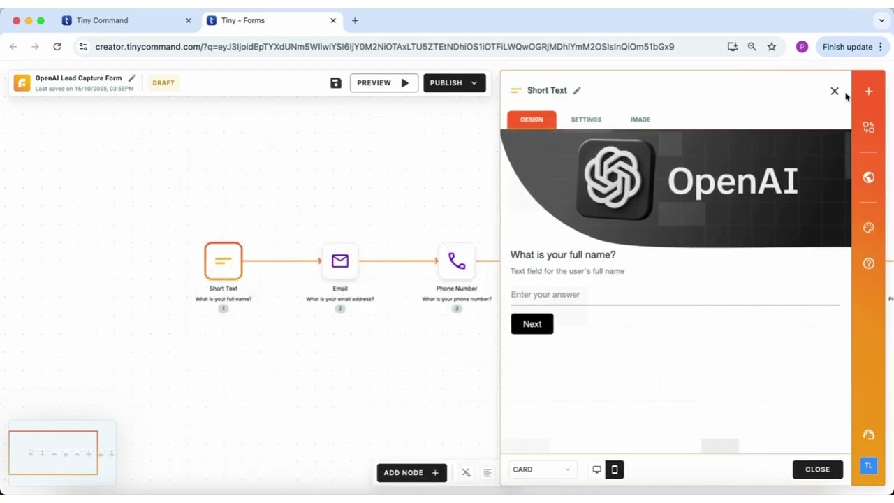TinyCommand brings your forms, workflows, data, emails, and AI agents together, so everything connects and runs on its own. Build smarter, automate faster, and manage it all in one no-code platform.