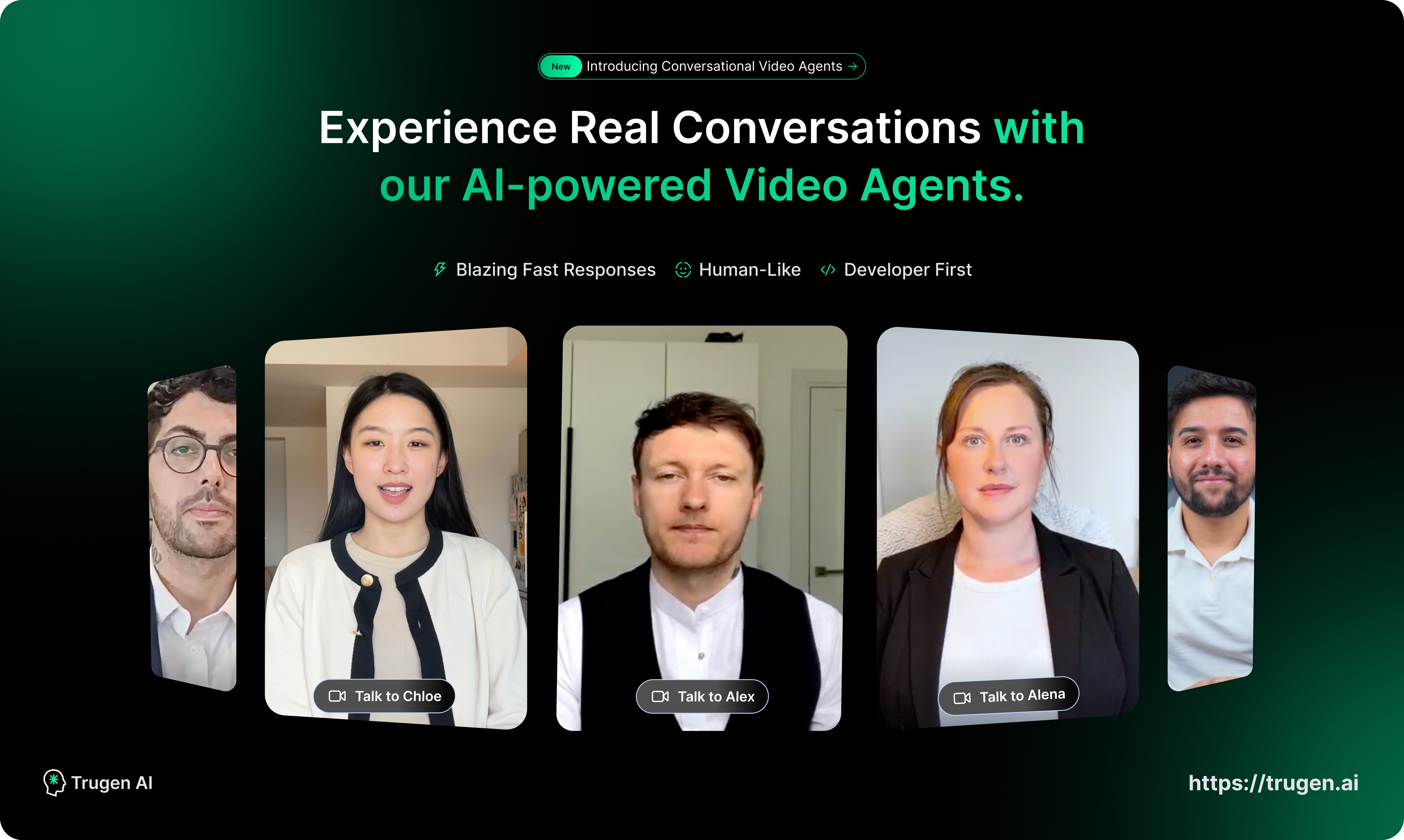 TruGen AI delivers hyper-realistic Video Agents that see, hear, remember, and act in real time - transforming conversations into natural, human-like interactions. Scalable, secure, and API-first, it adapts across industries and languages. Fast, secure and easy to integrate.