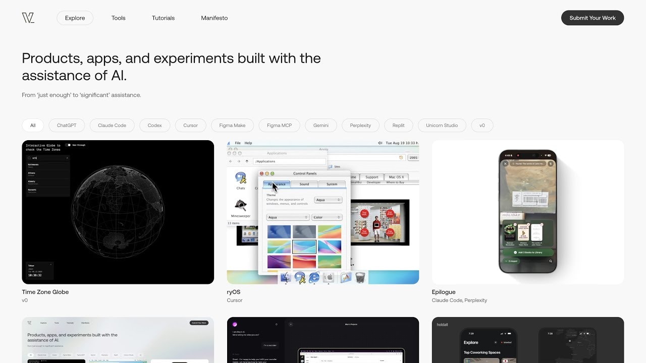 Varchive is a showcase of apps, websites, and experimental projects built with AI assistance, from passion projects to enterprise-grade apps. Varchive itself is built and maintained with assistance from Cursor and Codex. We've populated the archive with a few real-world apps—now it's time to submit yours.