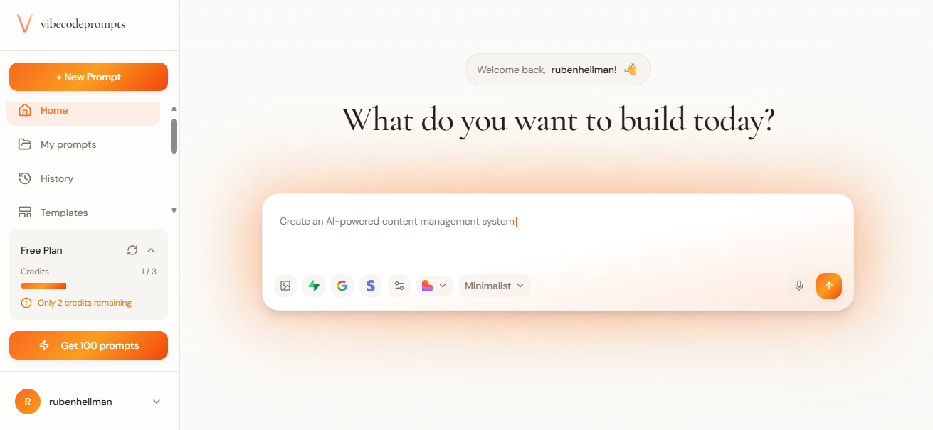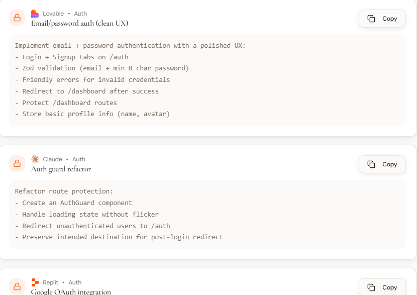 VibeCodePrompts helps builders reduce prompt friction when working with LLMs. It takes messy, high-level ideas and rewrites them into explicit, constraint-aware prompts optimized for vibe-coding workflows like UI scaffolding, auth flows, and integrations. The focus is on improving first-pass output quality so you spend less time iterating and more time building. Built for creators who want faster feedback loops without managing long