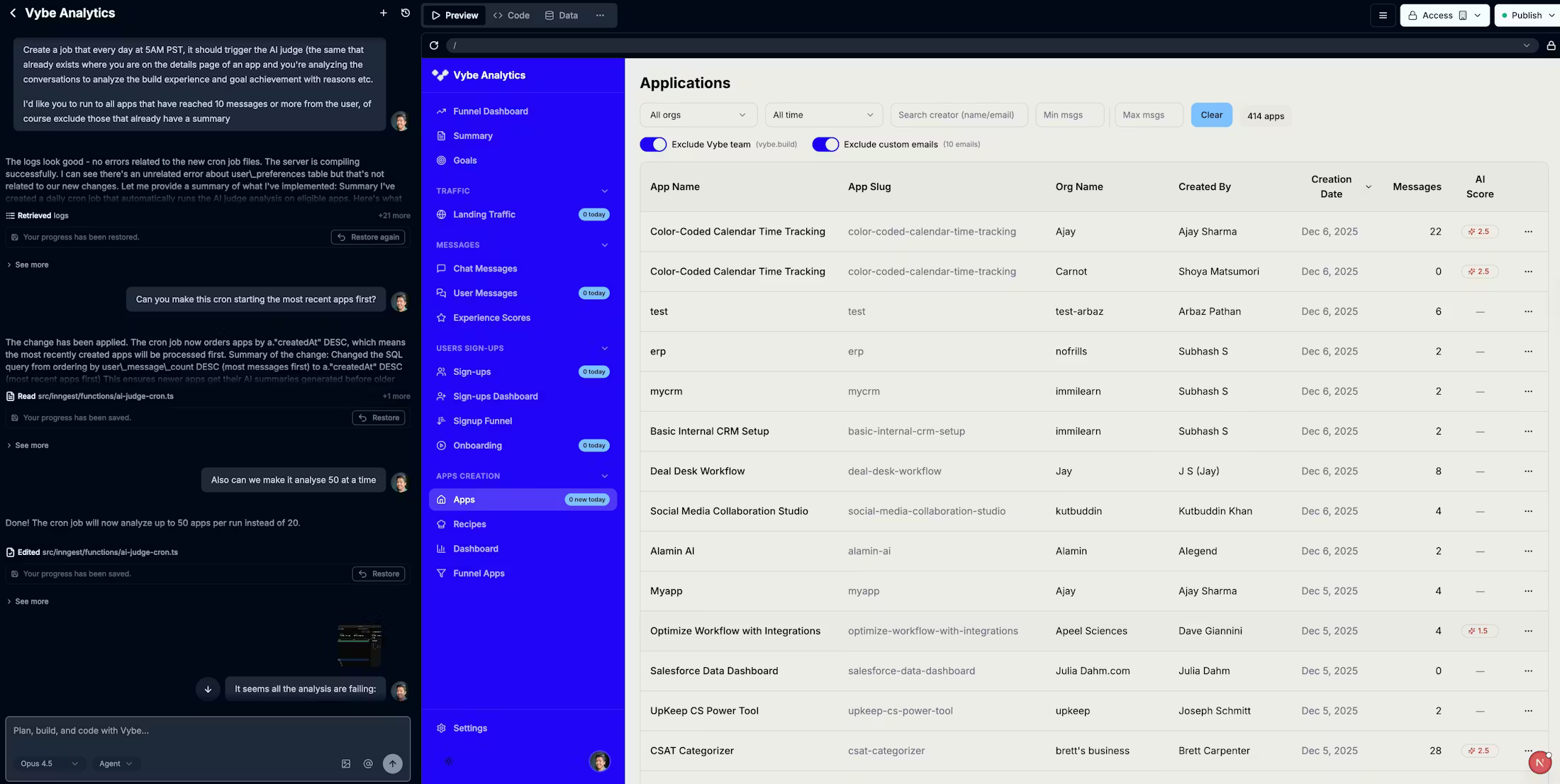 Vybe turns natural language into secure, production-ready internal apps that connect to your real data. No long backlogs, no glue code, no fragile prototypes. Auth, roles and deployments are built in. Plug in Postgres, Salesforce, Jira and 3,000 integrations. Start from scratch or remix templates used by world-class operators and make them your own in seconds. Internal tools that actually ship.
