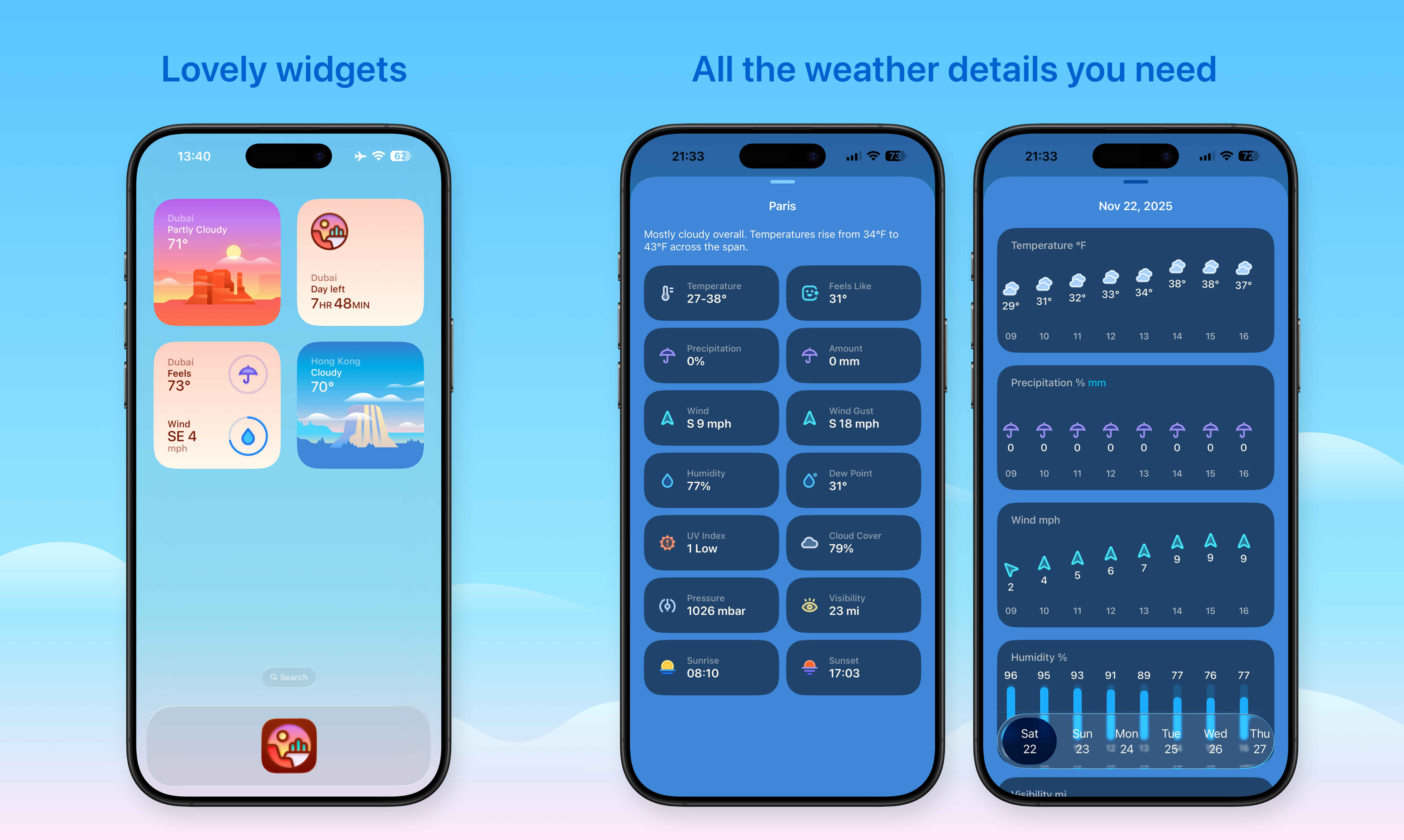 Weather mini 3, with all-new illustrations and helpful trip forecasts, is now available on more devices. New trip forecasts show all your stops at once, instead of checking the weather city by city. On-device Apple Intelligence provides helpful trip insights directly from the device, making it safer and faster.