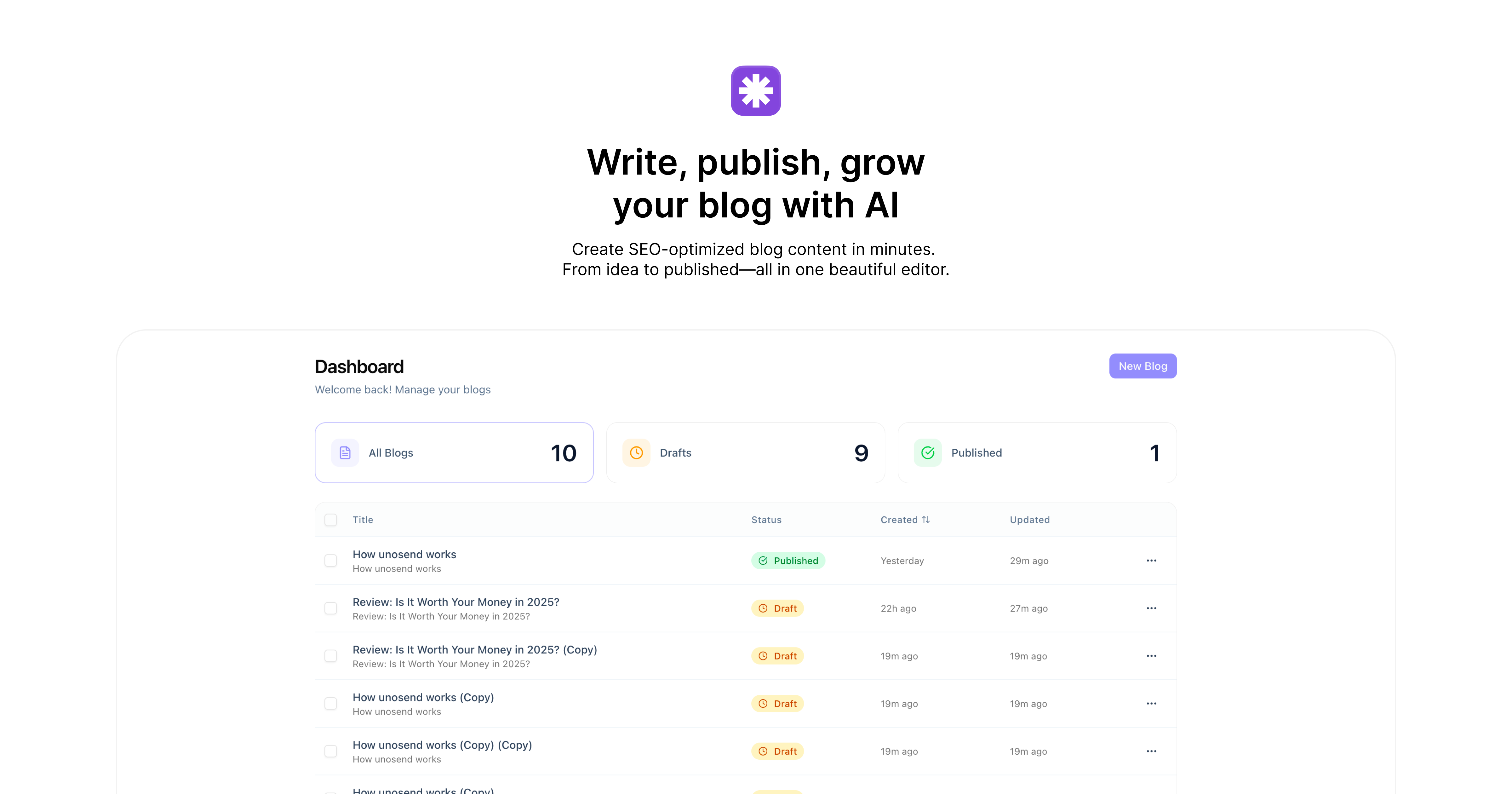 Writine is the #1 AI-powered blog writing platform. Create SEO-optimized articles, blog posts, and content in minutes. Free AI writer with built-in SEO tools, content optimization, and publishing features.