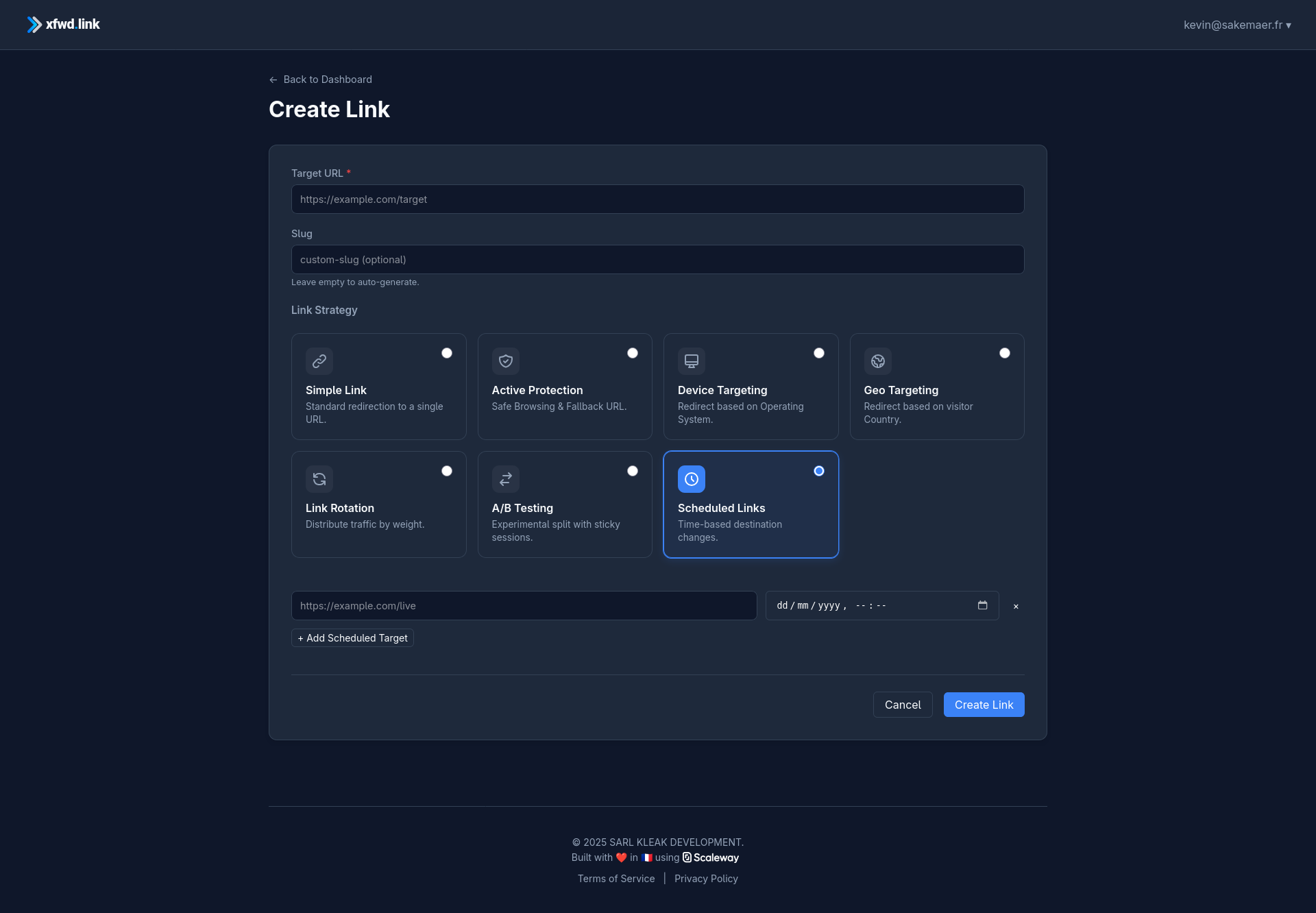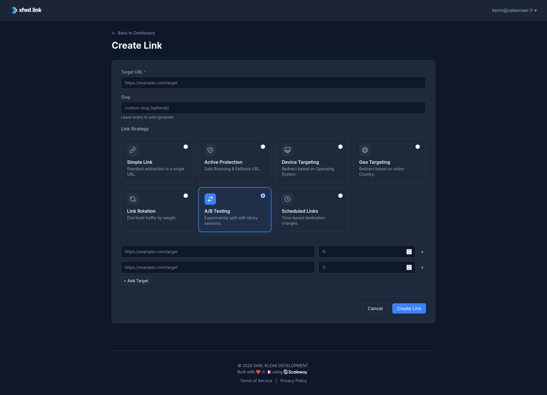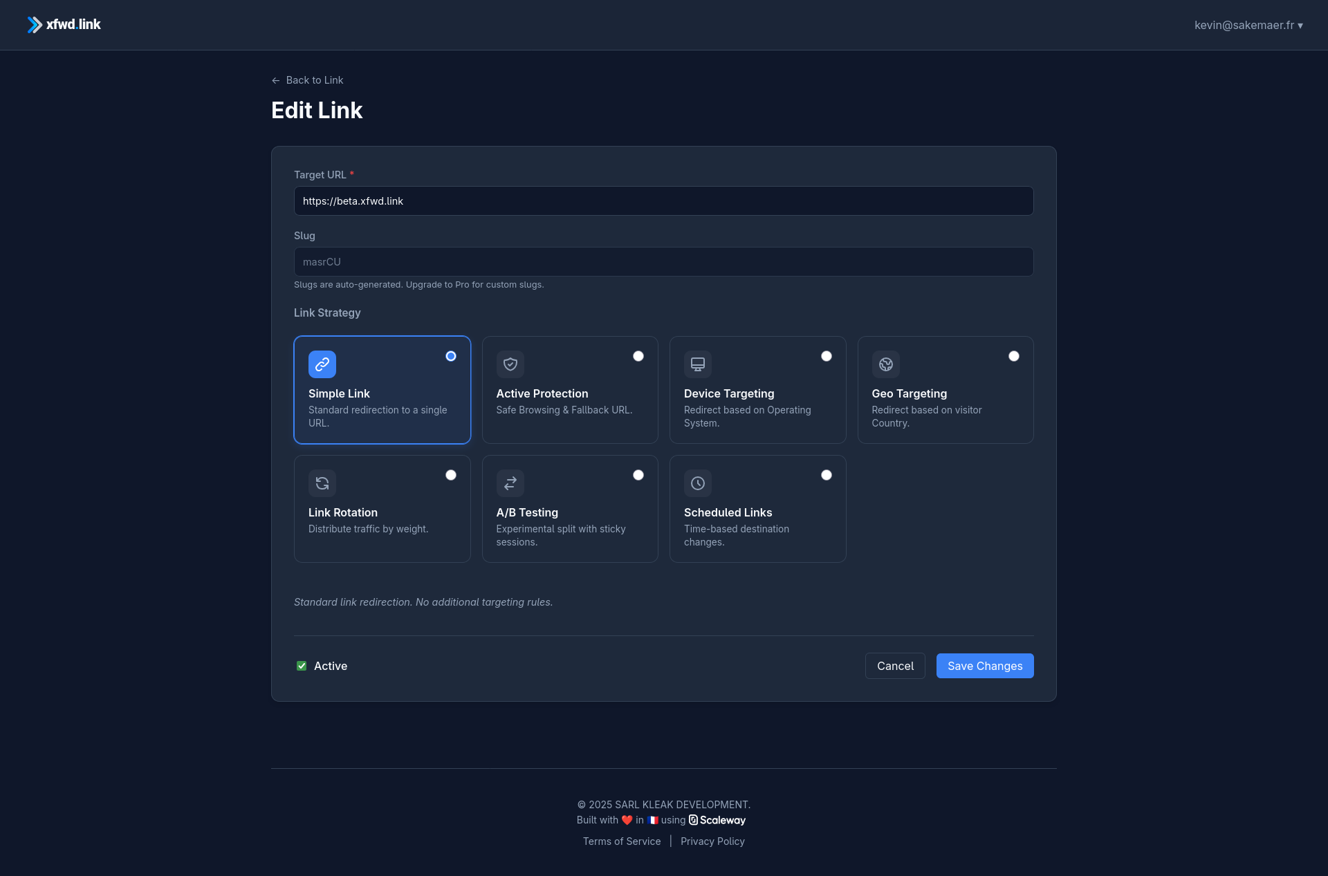 Kill "Link Anxiety" with xfwd.link. 🚀 Stop paying the "Enterprise Tax." We built xfwd.link to be the professional link manager that respects your budget. Why switch? 🛡️ Active Protection: We pulse your site & auto-pivot on 404s. ⏰ Automatic Switch: Schedule URL changes & stay in bed. 😴 🌍 Traffic Engineering: Geo-targeting (powered by IPinfo) & A/B testing. 🔓 Fair Limits: Pro features for half the cost of the giants. Traffic engineering for everyone.