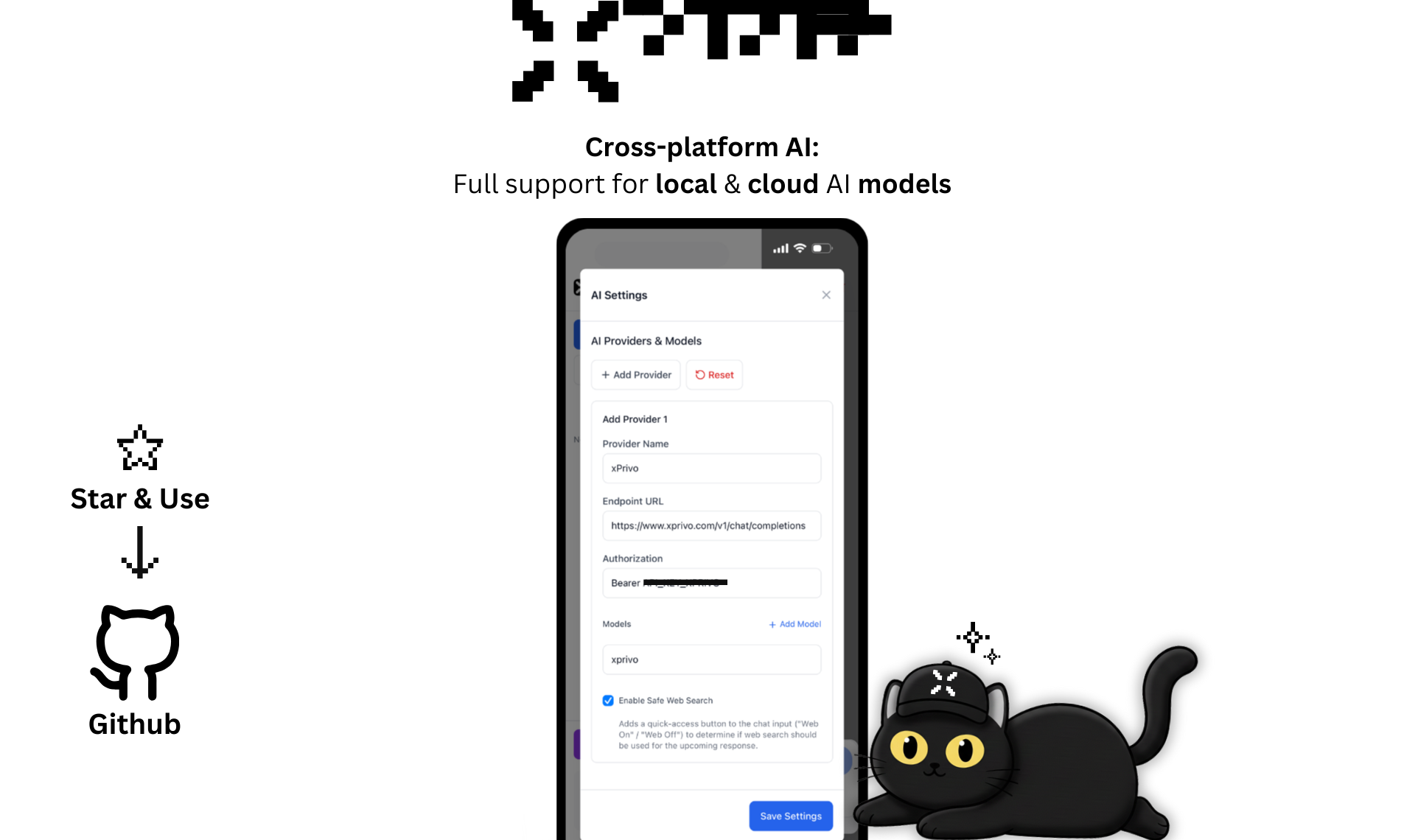 xPrivo is a free, open-source, private AI chat assistant that focuses entirely on keeping you anonymous. You never need to create an account, even with the PRO membership. You can either self-host it or use it directly via the website. xPrivo uses modern, powerful open-source models such as Mistral 3 and DeepSeek V3.2, which are self-hosted in the EU. Chats are never logged or used for training, and they stay completely local to your device. Your chat history is never stored elsewhere.