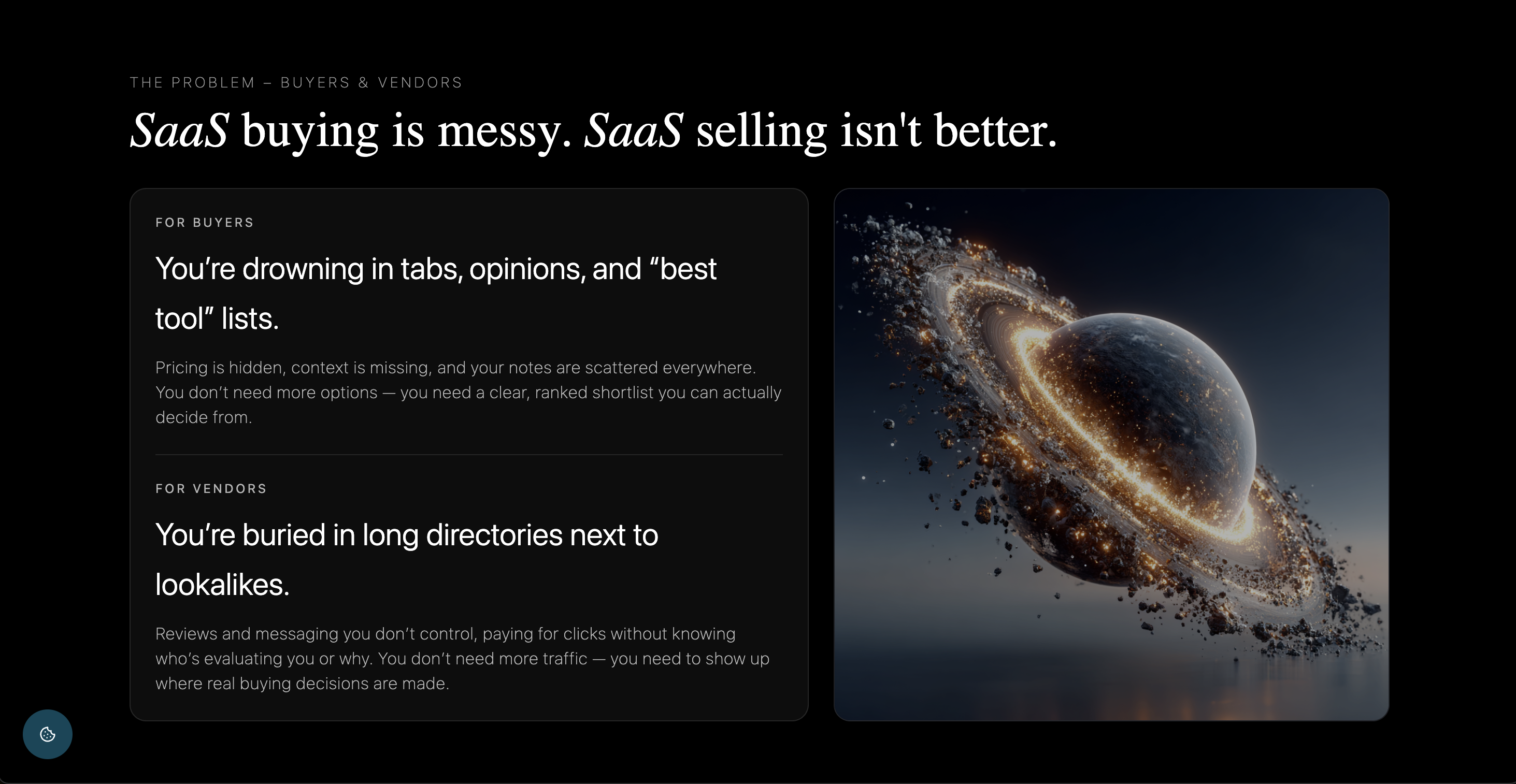 Describe your stack + constraints. zedek.ai returns a ranked SaaS shortlist with fit notes, pricing signals, and risks, ready to share with your team.